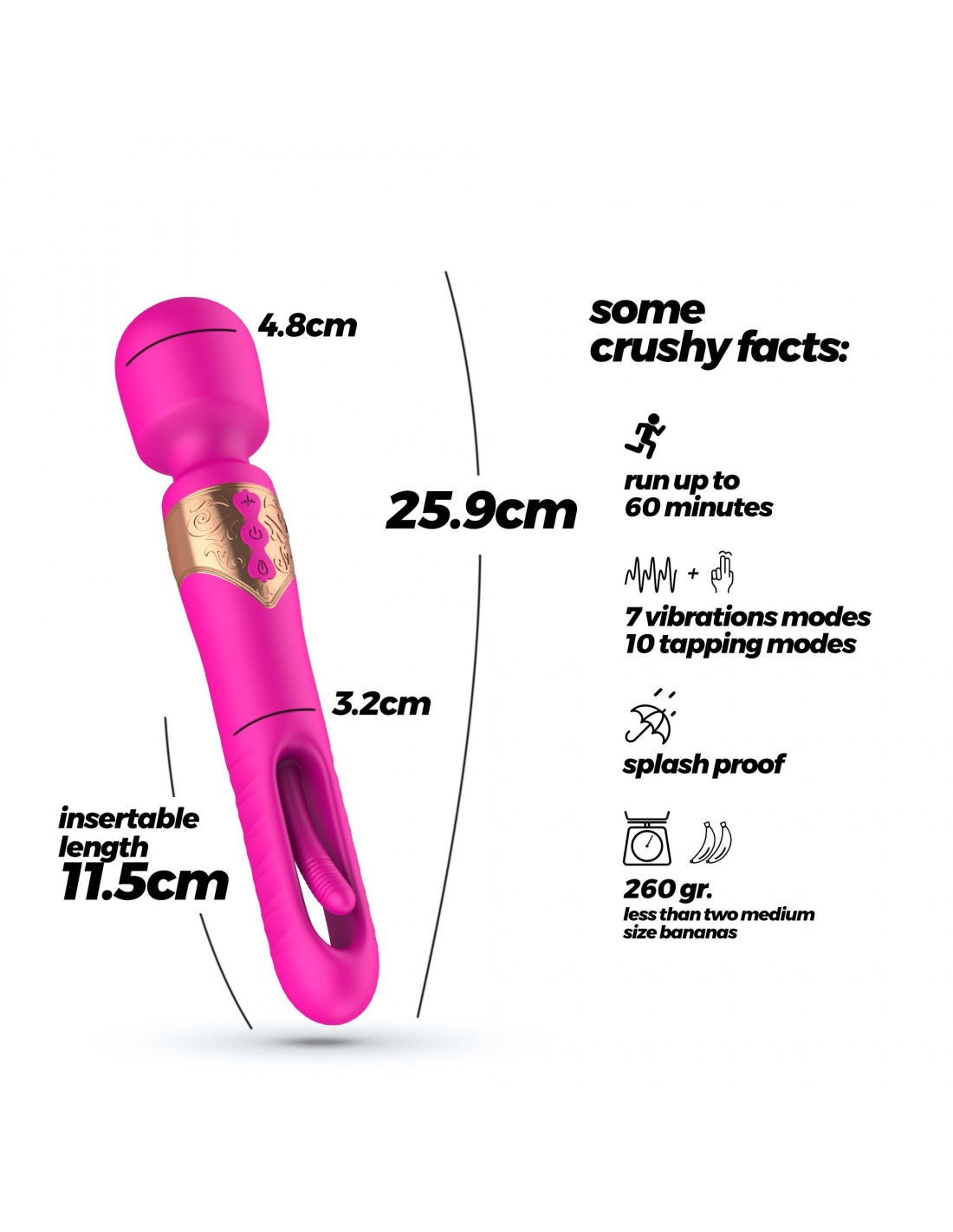 Por un lado, encontrarás una varita mágica extra potente con 7 modos de vibración y, por el otro, 10 extraordinarios modos de movimiento que harán que tu punto G alcance los orgasmos más increíbles.
