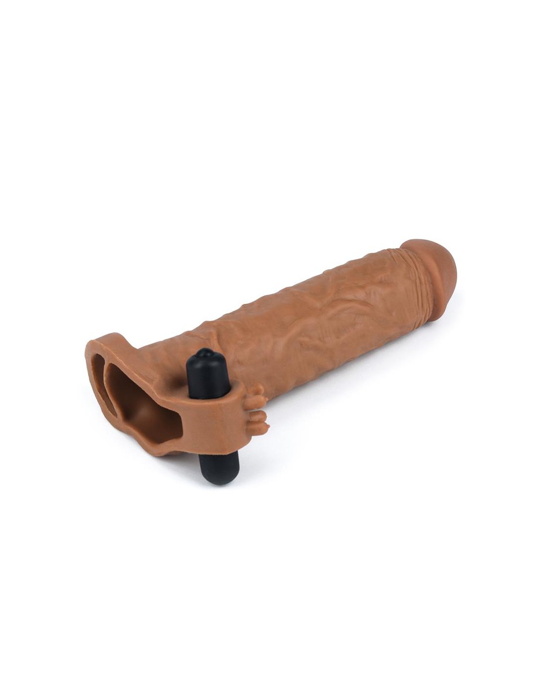 Consigue la erección que siempre has querido con esta funda para el pene de LoveToy. Esta funda es súper realista, con glande y un cuerpo lleno de venas para añadir un placer extra. En la base encontrarás un anillo para los testículos, ideal para que la funda no se mueva de su sitio. A mismo tiempo una bala vibradora hace que ambos disfrutéis el doble.