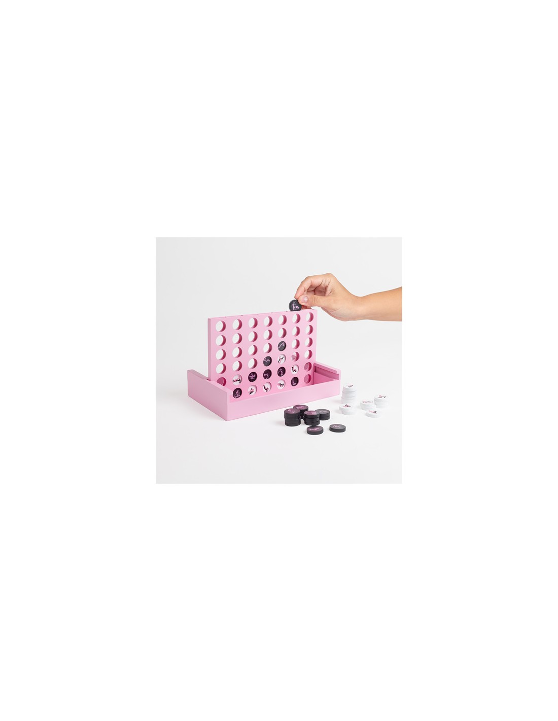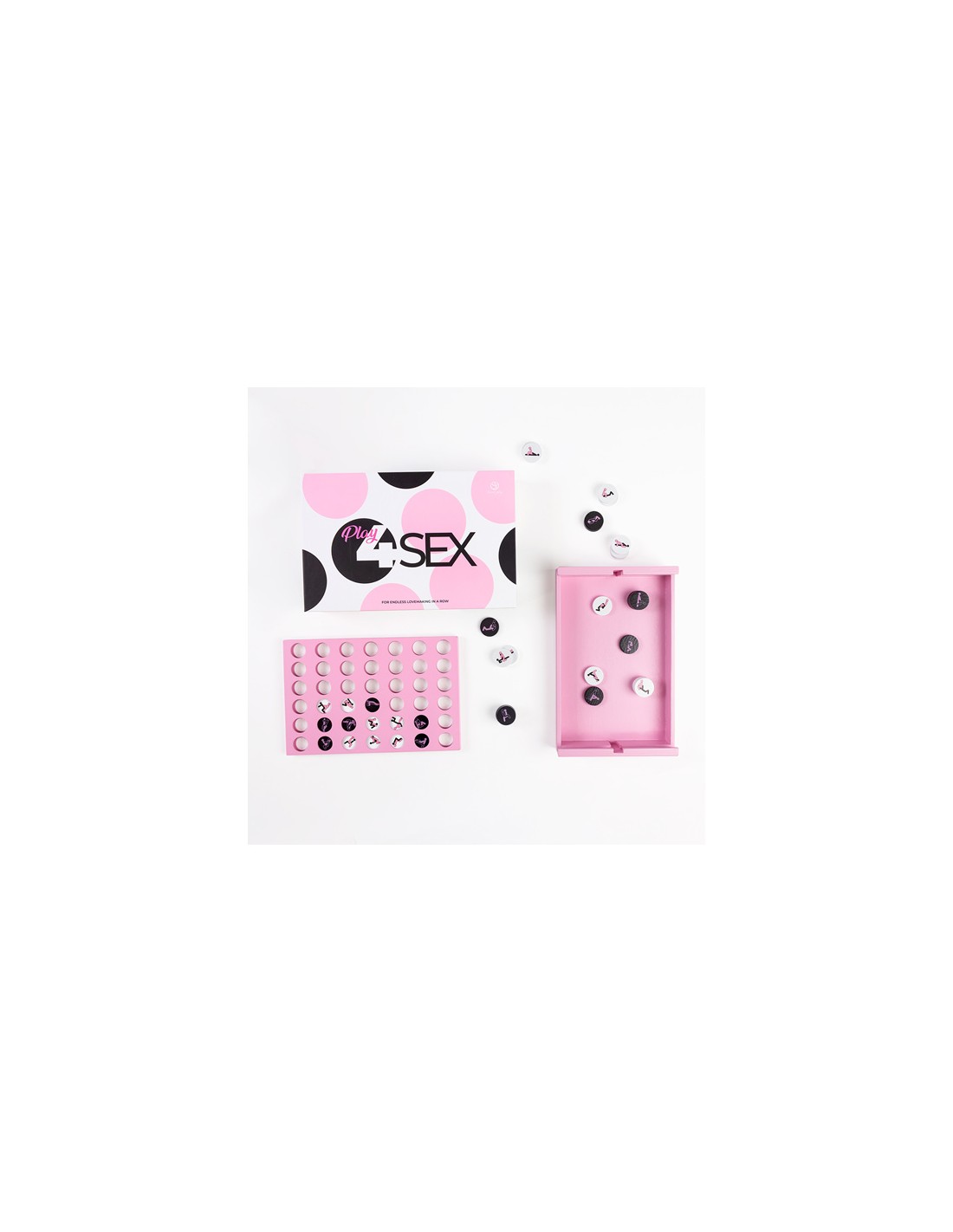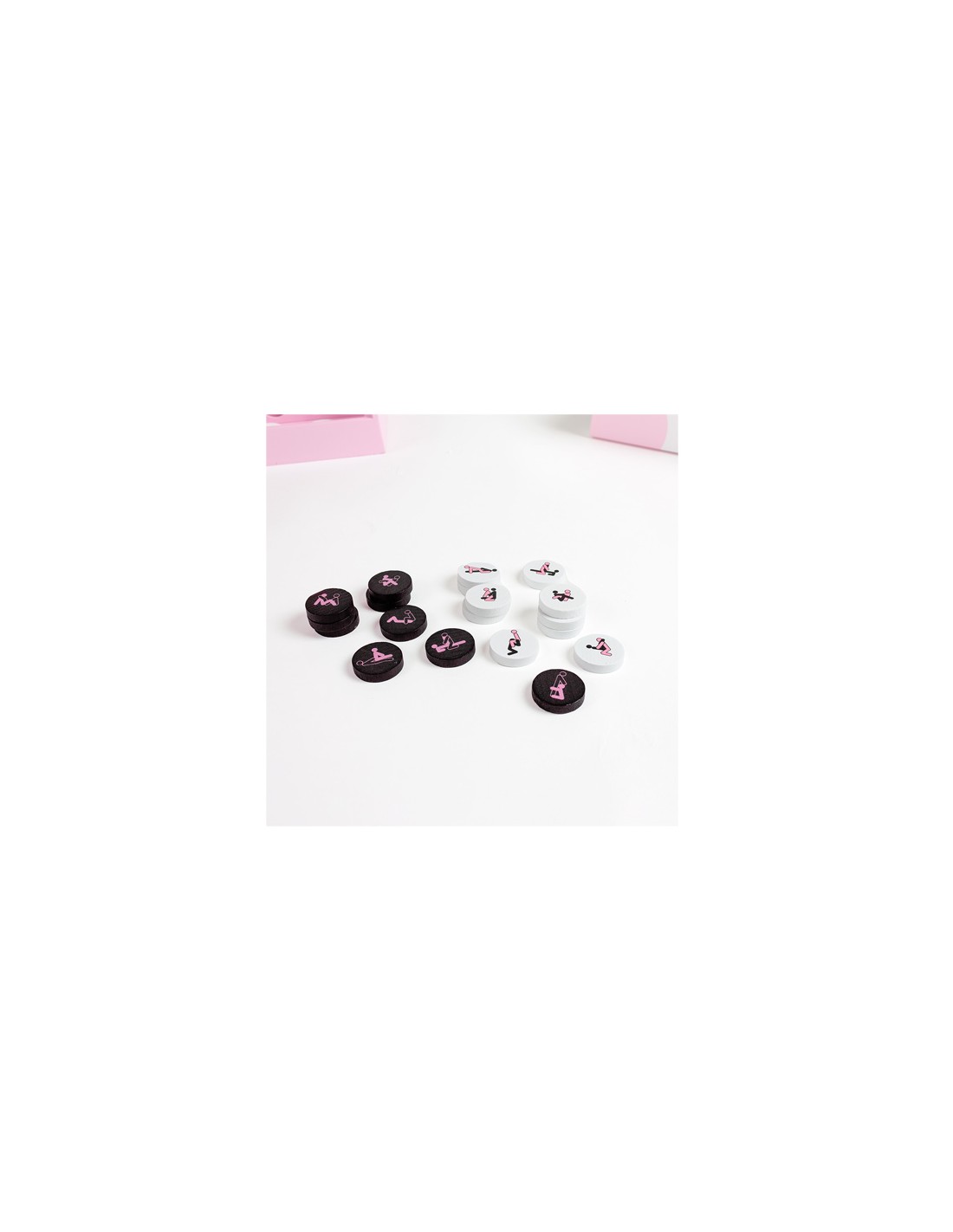 - 42 fichas (21 fichas de color blanco y 21 fichas de color negro) cada una con una posición de Kamasutra diferente.