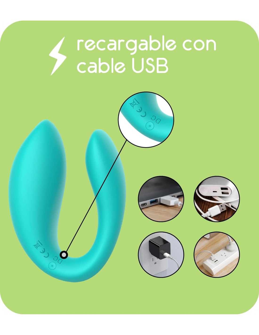Vibrador para pareja que genera sensación de placer inolvidable. HERA está diseñado en forma de U con un potente motor en cada extremo, uno se encuentra en tu clítoris mientras con el otro masajeas tu punto G, lo que hace que sea muy útil en el fortalecimiento vaginal y el incremento en la excitación sexual.